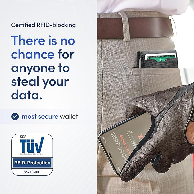 - ππ‘ππ¨π¦π§π₯π¬-π§ππ¦π§ππ π¦πππ¨π₯ππ§π¬ - Tested by an independent German quality control institute. Our wallets block the 13.56 MHz band and protect against data theft by RFID scanners