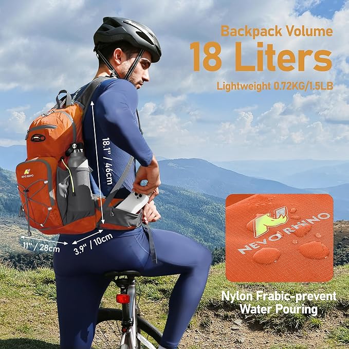 N NEVO RHINO Hydration Backpack, 18L Multipurpose Hiking Backpack with 3L Water Bladder, Water Backpack Insulated Hydration Pack Ideal for Hiking and Cycling