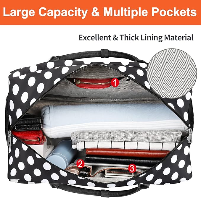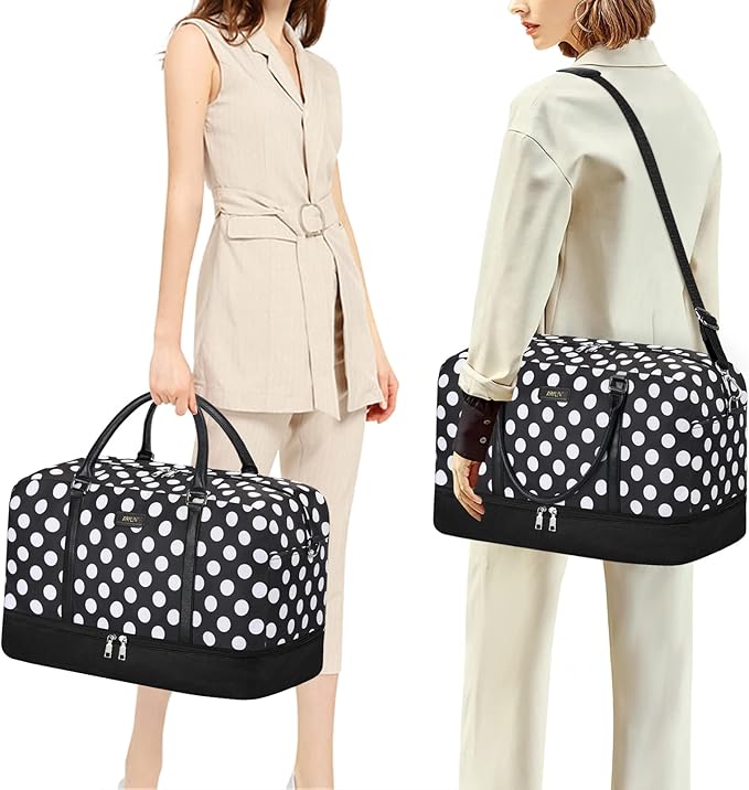 - Weekender Bag with Shoe Compartment: The bottom is a waterproof separated compartment, you can take shoes, dirty clothes, wash bags or other things in it, keep them clean and tidy. The set comes with 2 shoulder straps, you can carry travel bag on one shoulder or crossbody, releasing your hands and reducing pressure on hand.