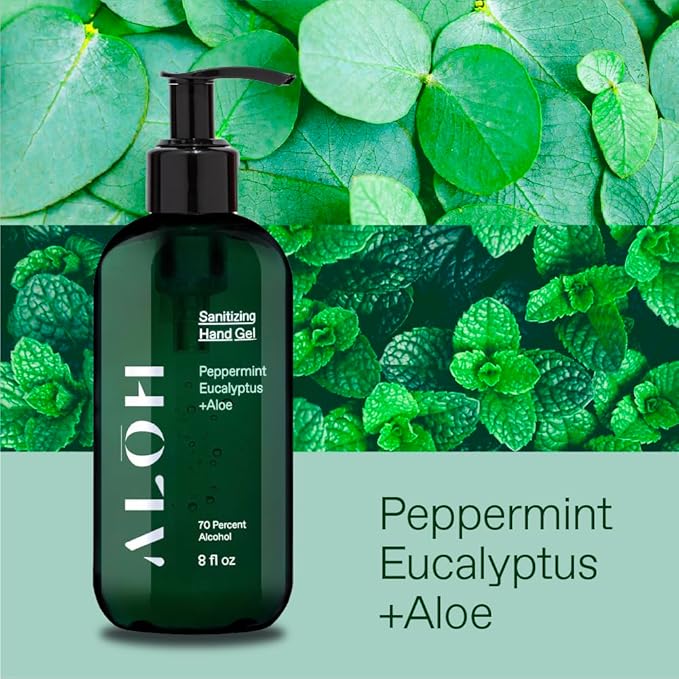 ALŌH Sanitizing Hand Gel 2-pack | Peppermint Eucalyptus + Aloe | 70% Alcohol Hydrating Hand Sanitizer Gel with Essential Oil, for Kids & Adults | 8oz Bottle (Set of 2)