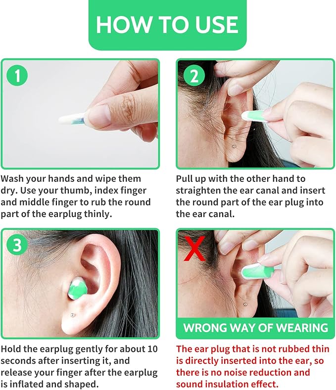 - 1. Ultra-Soft & Comfortable Foam Earplugs: Made from non-toxic, skin-friendly foam with slow rebound (45-60s) for a perfect fit in your ear canal, ensuring low-pressure comfort.