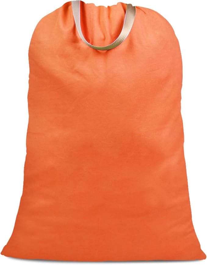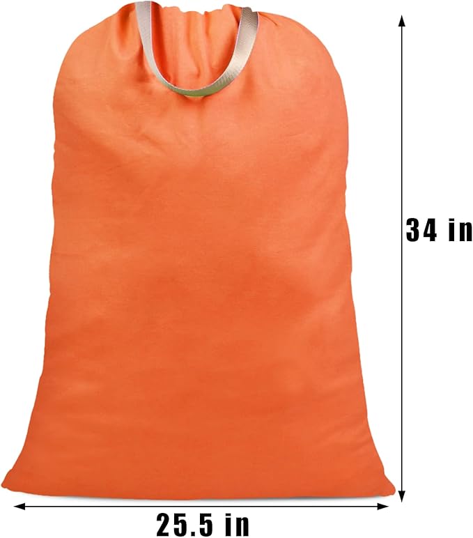 Cotton Canvas Laundry Bag with Handles & Drawstring Straps, Heavy Duty Extra Large Laundry Bags for Laundromat and Household, 25.5x34 Inch, Orange