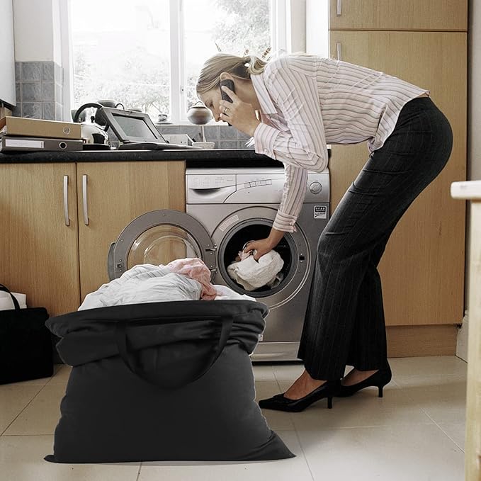 - CONVENIENT DRAWSTRING CLOSURE & HANDLE DESIGN: These Laundry bags with drawstring closure will make it easy to open & close, keep your stuff inside and prevent spill of personal items after tie the knot. The handle allows you to carry the laundry bag easily or hang this laundry bags on the wall hook.