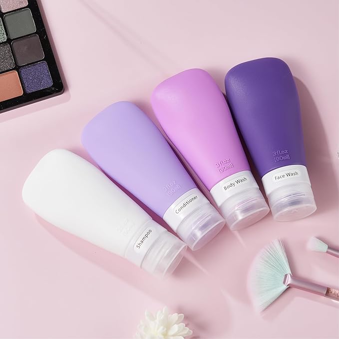- TSA Carry on Approved: 4 pack 3 ounce silicone travel bottles, perfect for shampoo, conditioner, body wash, lotion, hand sanitizer, shower gel. Packed with a high quality zippered clear toiletry bag, saving space, easy to carry with for travels or gym workout.