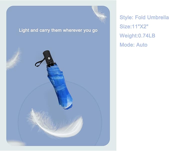 SIEPASA Windproof Travel Compact Umbrella-Automatic Umbrellas for Rain-Compact Folding Umbrella, Travel Umbrella Compact, Small Portable Windproof Umbrellas for Men Women Teenage. (Sky)
