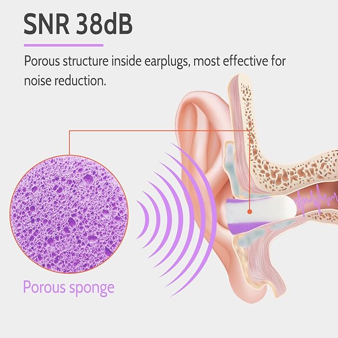 - 2. 38dB SNR Noise Reduction: Lab-tested by Micheal & Associates, Inc., these earplugs reduce noise by 38dB SNR (31dB NRR) while allowing you to hear alarms or voices.