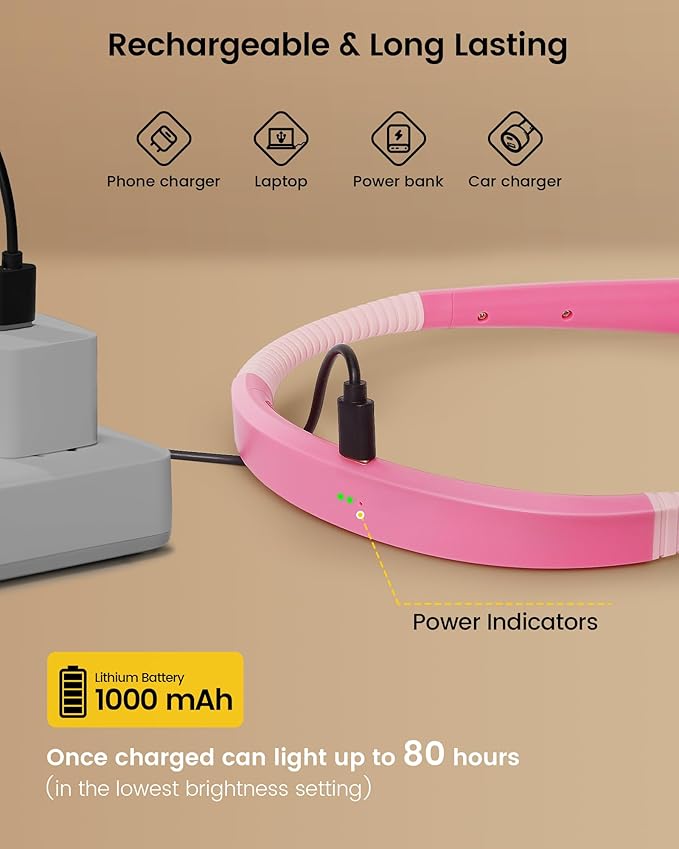 - [Rechargeable 1000mAh Battery] It's a USB-C rechargeable book reading light with undisturbed illumination. Thanks to the built-in 1000mAh battery, which can last up to 80 hrs at the dimmest level. After a full charge, you can enjoy reading for at least 20 days if you read 30 minutes daily, even at the brightest level. Besides, 3 indicators on the neck area remind you when you need to charge the light.