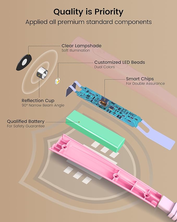 - [3 Colors & 3 Brightness Adjustable] 3 color temperatures: amber light (1800k) / warm white light (3200k) / cool white light (6000k). The special 1800k amber mode blocks 99.99% blue light for eye care. Choose amber light for reading in bed, cool light for knitting, and white light for repair. Also, this book light has 3 dimmable brightness levels; you can choose different light settings for multi-purposes.