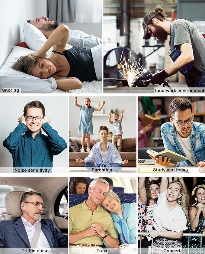 - Effective Noise Reduction: The ear plugs noise reduction have different noise-cancelling effects in different scenes (NRR 25dB to 33dB),soften the sound source and reduce noise while preserving the sound clarity and sharpness. These comfortable ear plugs for sleeping help preserve your hearing and provide you with some peace in a noisy world.