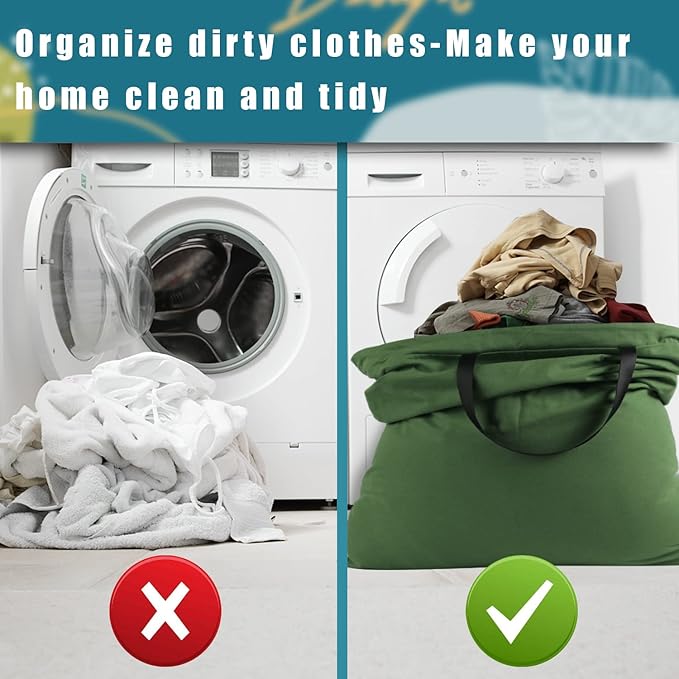 - SIZE: 25.5" x 34", The size is big enough to store 3-4 loads laundry. It's a perfect size for laundromat and household. Extra large laundry bag would reduce the stress of your laundry day and make you complete laundry works quickly and easily.