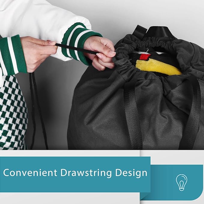 - EASY CLOSURE & CARRY: The laundry bag with drawstring can closure easily, you can tie a knot and prevent spill of your clothes. Design with handles, convenient to carry and you also can hang it on the wall or anywhere with hooks.