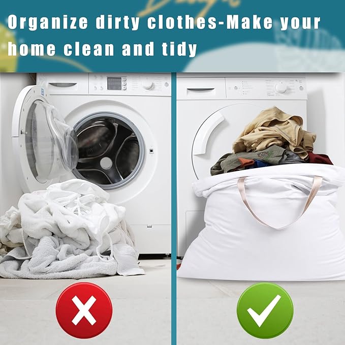 - SIZE: 25.5" x 34", The size is big enough to store 3-4 loads laundry. It's a perfect size for laundromat and household. Extra large laundry bag would reduce the stress of your laundry day and make you complete laundry works quickly and easily.