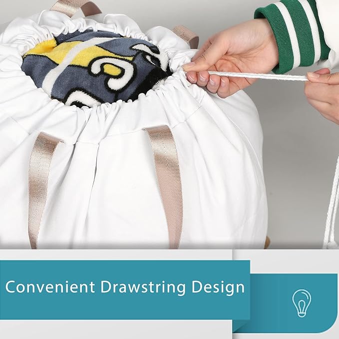 - EASY CLOSURE & CARRY: The laundry bag with drawstring can closure easily, you can tie a knot and prevent spill of your clothes. Design with handles, convenient to carry and you also can hang it on the wall or anywhere with hooks.