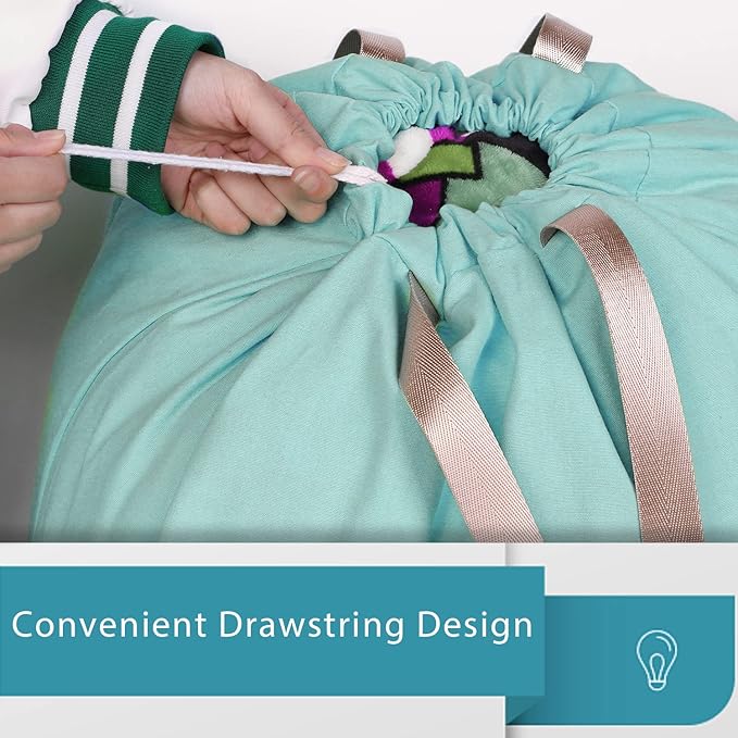 LOLOMLO Extra Large Canvas Laundry Bags with Handles & Drawstring Closure, Heavy Duty Tears Resistant Clothes Storage Travel Bags,25.5"x34",Teal Blue
