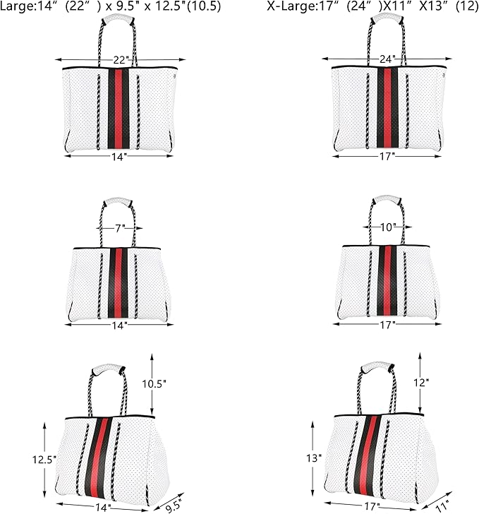 - FASHIONABLE AND ELEGANT: Using the high-quality neoprene and polyester material, unique classic design style, these beach bags look particularly stylish and elegant. The same bag can be changed three styles, you have three options only pay a bag. Please look at the picture and make your choice.