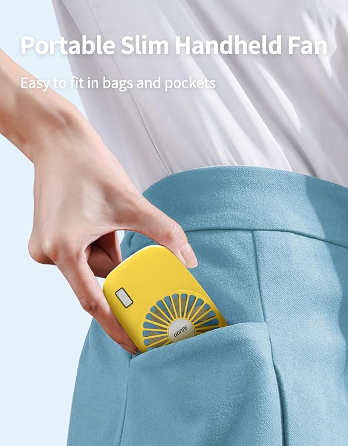 Aluan Handheld Fan Mini Fan Powerful Small Personal Portable Fan Speed Adjustable USB Rechargeable Cooling for Kids Girls Boys Woman Man Home Office Outdoor Travel, Yellow