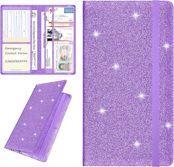 - Glitter and Eye-catching: Made of glitter PU leather and durable vinyl PVC. Cute and sleek organizer will keep your car document all in one place!