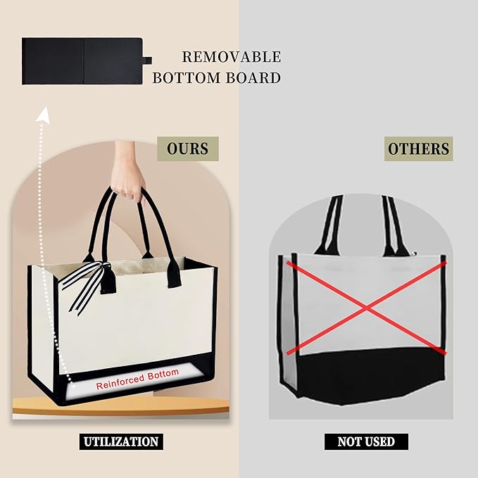 - Inner Zipper Pouch & Removable Bottom Support :Our initial tote bags for women has a inner zipper pouch. The zipper pouch makes it easy to store your small important items,such as phone,keys.And makes it easy access and items don't falling.Our gifts for her has a removable bottom support ensures that this teacher gifts can keep its shape and stand upright on the table.