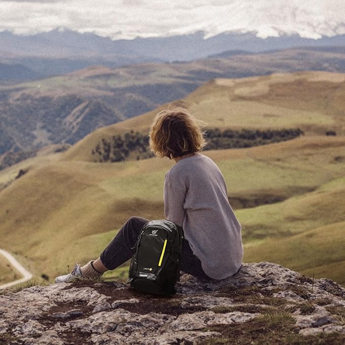 - UNIQUE APPEARANCE AND SAFETY DESIGN: The small hiking backpack features multiple compartments and an anti-theft zipper to prevent important documents and items from being stolen. The small daypack comes with an outdoor emergency rescue guide providing additional safety information for lovers of the outdoors. The LANTC20 backpack is the perfect combination of function and fashion, with a simple and smooth design featuring yellow webbing on the front panel and contrasting embroidery