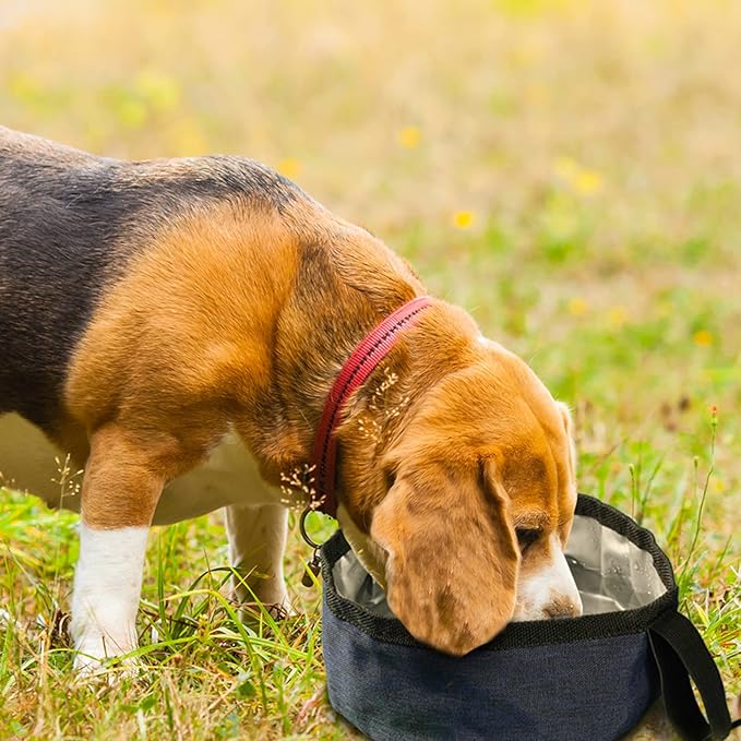 - Enough Capacity for Drinking: the portable dog bowl is approx. 7 inches in length, 2.6 inches in height, can hold 40 oz of water or food, after filling with water, the bowl will remain firm and straight, not easy to tip or tumble