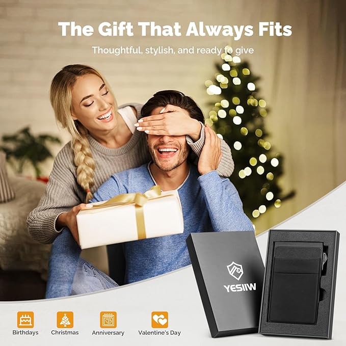 YESIIW Credit Card Holder Wallet for Men RFID Blocking Slim Minimalist Metal Wallet with Money Pocket Contactless Card Protector