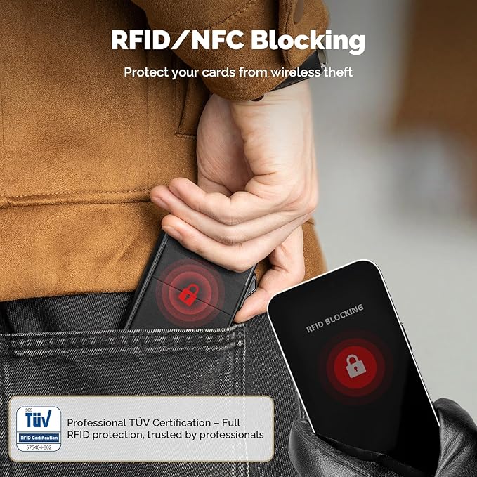 - RFID & NFC Blocking Wallet - Your peace of mind is our priority. Crafted with top-quality materials and reinforced stitching, our rfid wallet for men ensures durability and longevity. Your valuable cards and cash stay securely in place, protected from potential mishaps.