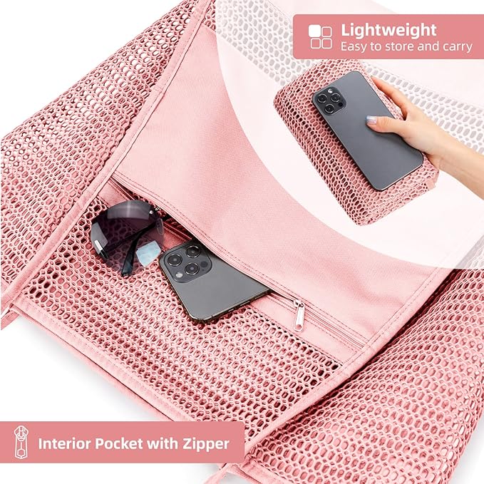 KALIDI BeachNylon Mesh Tote Bag, Casual Tote Bag Hobo Women Foldable MAX 23L Shoulder Bag For Beach Picnic Vacation
