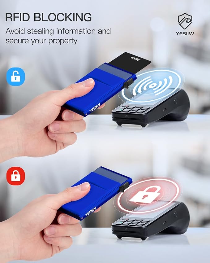 YESIIW Credit Card Holder Wallet for Men RFID Blocking Slim Minimalist Metal Wallet with Money Pocket Contactless Card Protector