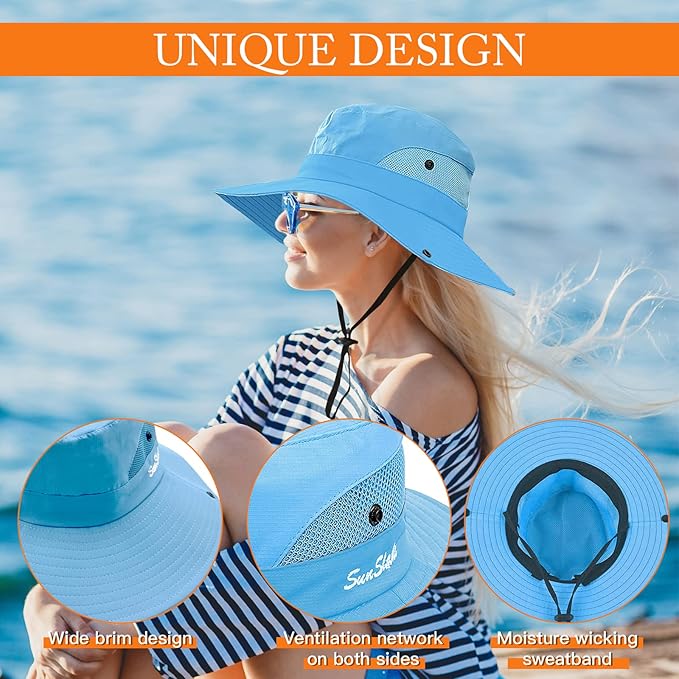 Sun Hats for Women Beach Hat Ponytail Hat Womens Sun Hat with UV Protection Wide Brim