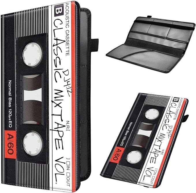 Car Registration and Insurance Holder, Leather Car Glove Box Organizer, Cool Car Accessories for ID, Driver's License Cards & Essential Document, business cards, Men&Women, Retro Audio Cassette