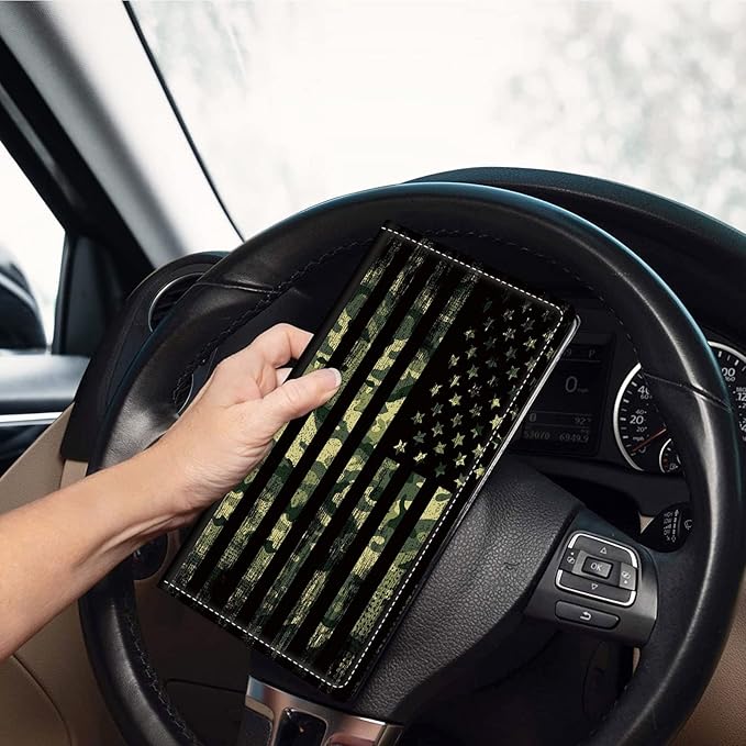 Car Registration and Insurance Holder, Leather Car Glove Box Organizer, Cool Car Accessories for ID, Driver's License Cards & Essential Document, business cards, Men&Women,Military Camouflage USA Flag