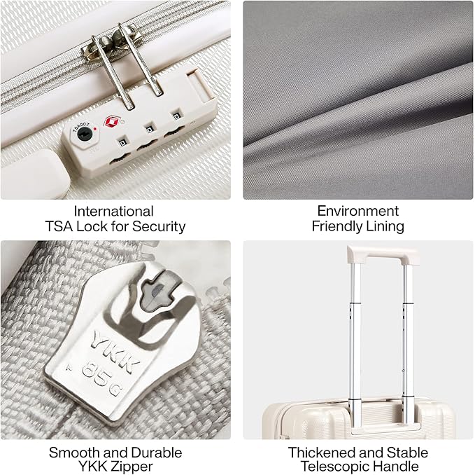 Hanke Luggage Sets 2 piece Carry On Luggage with Wheels PC Hard Shell Suitcases Lightweight Checked Travel Luggage Large Travel Suitcase Woman Men 20/29 Inch(Ivory White)