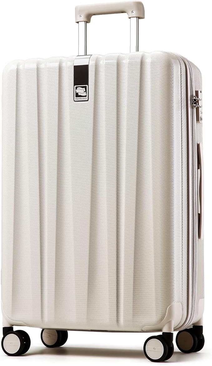 Hanke 29 Inch Luggage Suitcases With Spinner Wheels Lightweight PC hardside Rolling Suitcase With Travel Lock, Checked-Large 29-Inch Christmas Gifts for Birthday(Ivory White)