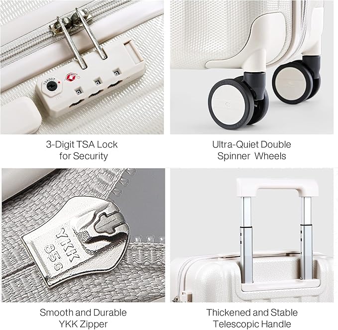 Hanke 20 Inch Carry On Luggage 22x14x9 Airline Approved Lightweight PC Hard Shell Suitcases with Wheels Travel Luggage Rolling Suitcase Travel Luggage Bag Christmas Gifts for Birthday(Ivory White)