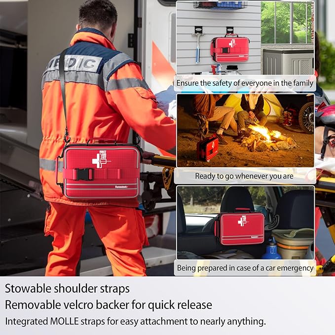 - Multi Carrying First Aid Kits:The Max first aid kit with removable compatible carrying straps, secure closure buckles and reflective stripe. There are handles on the top and side of the first aid kit, which can be mounted on luggage, cars, trucks, etc.