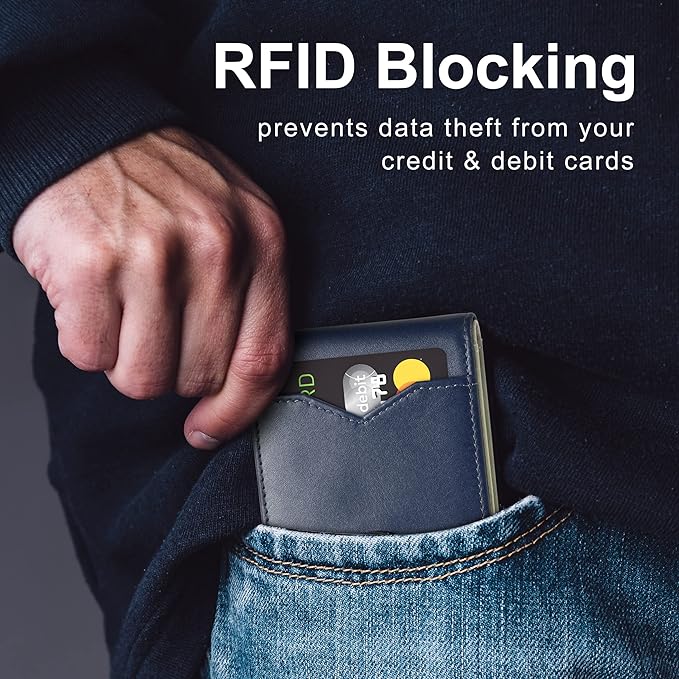 - Rfid Blocking: Our wallets are equipped with German Instiute Certified RFID Security technology, a unique metal composite, engineered specifically to block 13.56 MHz or higher RFID signals to protect the valuable information and privac.