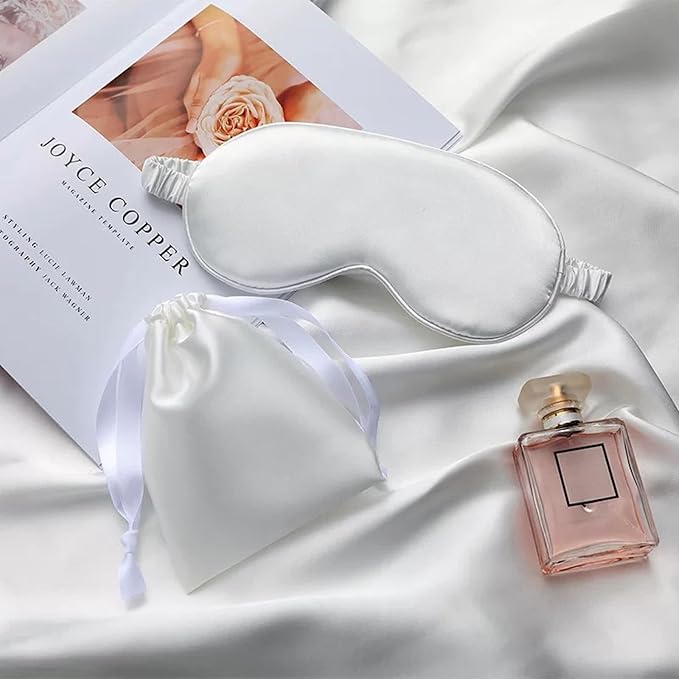 Silk Satin Sleeping Eye Mask, White Sleep Eye Night Blindfold for Women and Men, Soft Breathable Blackout Eyeshade Eye Cover for Travel, Wedding Bridesmaid Gift