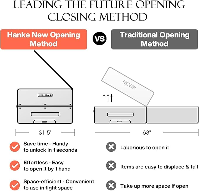 - 【CREATIVE FRONT OPENING】 Hanke trunk style carry on luggage,Leading the future opening and closing method which is effortless to open or close the suitcase, not only is it easy to load, but it also saves space. This design solves the problem that traditional luggage separated 2 compartments of heavy load then it's difficult to open and close. Importantly, it also avoid the displacement of items.