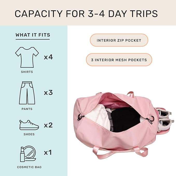 - 【Multi-functional】 Our bags are well suited to carry all of your personal items. Use it as a travel bag, yoga bag, hospital bag, maternity bag, or gym bag. It’s nice and roomy, so you can fit all your gear in one place.
