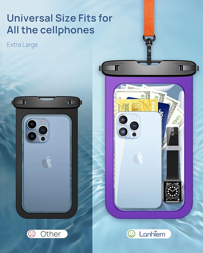 - Design for HD Display: The Lanhiem Waterproof pouch is designed with a clear PVC, the waterproof pouch has no effect on the display of the phone, just as high-definition as you usually see. Suitable for all mobile phones, no need to remove the case.
