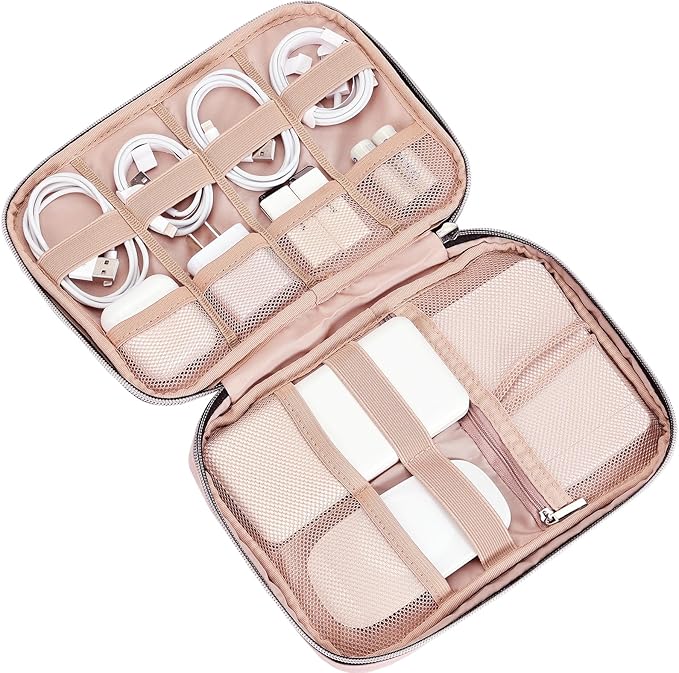 BELALIFE Portable Travel Cable Organizer Bag, Tech Storage Bag for Cord, Charger, Phone, Earphone, Hard Drive, USB, SD Card and Electronic Accessories, Pink