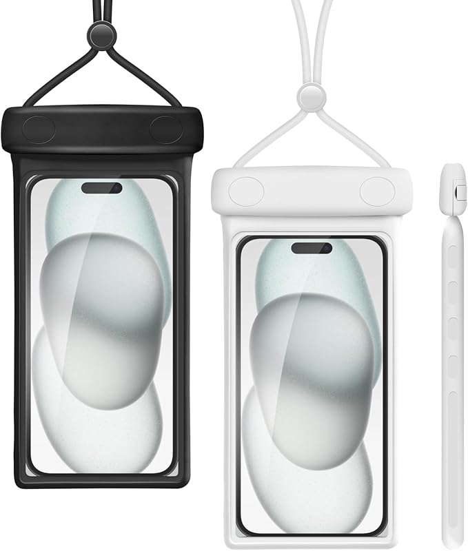 wellhouse Waterproof Phone Pouch, Waterproof Phone Case for iPhone 16 15 14 13 12 Pro Max XS Samsung, IPX8 3D Cellphone Dry Bag Beach Essentials (2 Pack - Duke Black & White7.0, 7 inch)