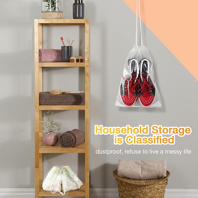 - Satisfy Your Various Needs: there are 100 pieces of shoe travel bags for packing in the package, mainly coming in clear color with white drawstring, sufficient and simple to meet your daily using, organizing, storing, replacing and sharing needs