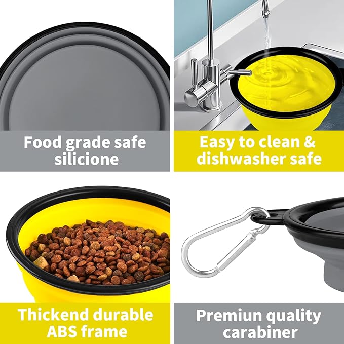 - ¡¾EASY TO CLEAN¡¿- Our collapsible dog bowls are made from 100% BPA-free food-grade silicone . These reusable, eco-friendly travel pet bowls are dishwasher safe for easy cleaning. Use them as everything from cat bowls to dog bowls for large dogs!