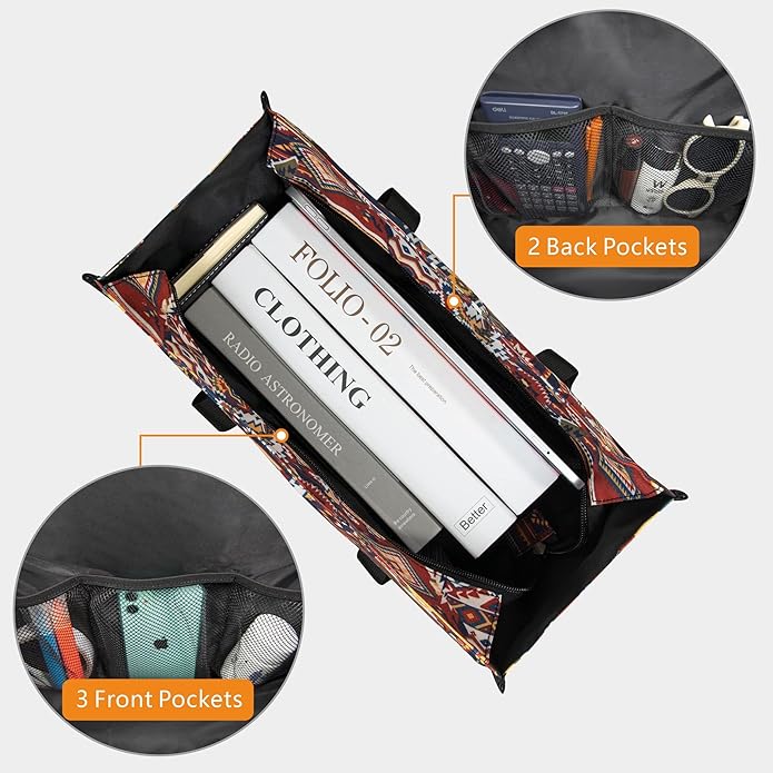 TOPDesign Utility Water Resistant Tote Bag with 13 Pockets, Top Zipper Closure & Thick Bottom Support, for Working Women