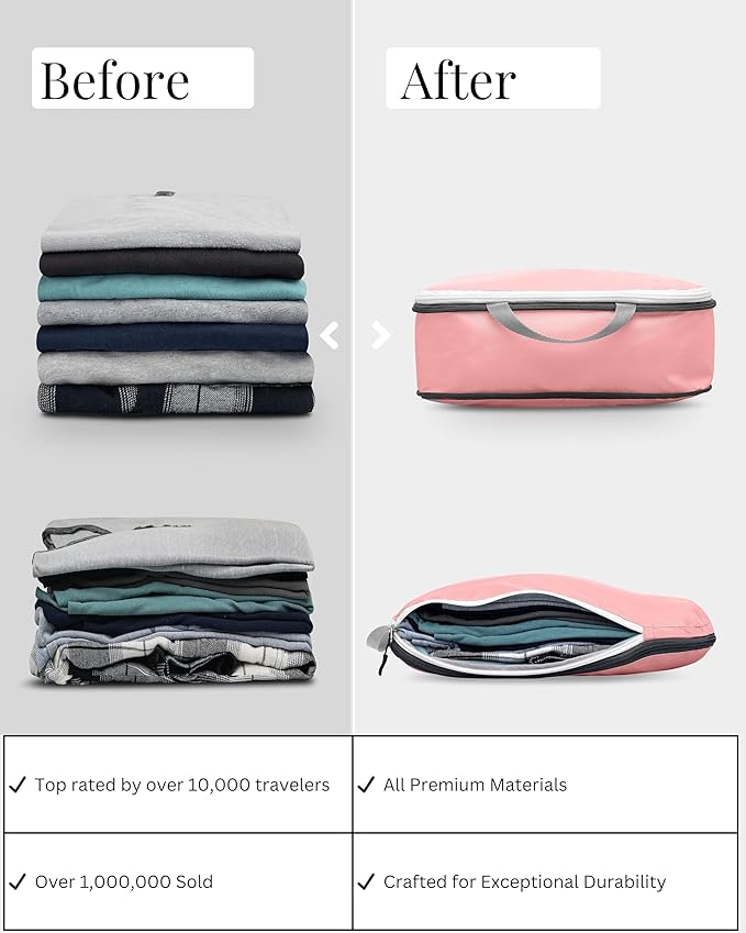 - PACKING CUBES MAKE TRAVEL EASIER. Compression cubes help you with packaging your clothes for upcoming trips by compressing the air out of them. Make your suitcase up to 30% more spacious!