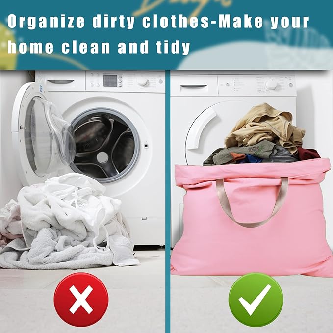 - EASY CLOSURE & CARRY: The laundry bag with drawstring can closure easily, you can tie a knot and prevent spill of your clothes. Design with handles, convenient to carry and you also can hang it on the wall or anywhere with hooks.