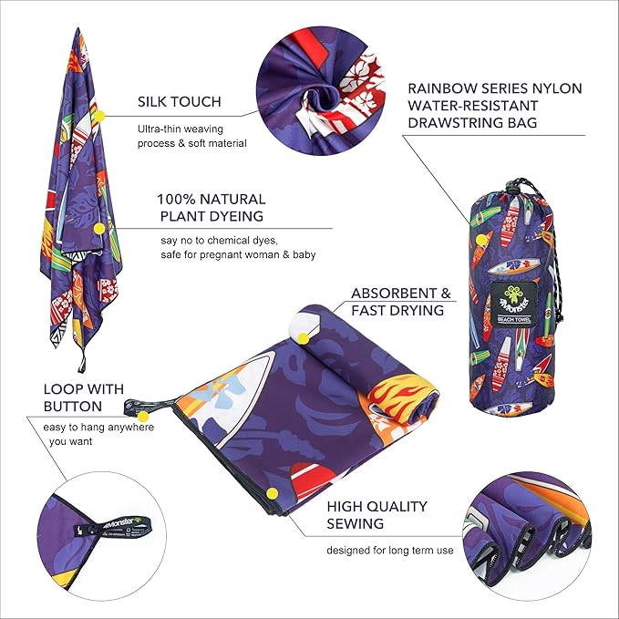 4Monster Microfiber Beach Towel Quick Dry,Super Absorbent Lightweight Travel Towel for Swimmers, Sand Free Camping Towel, Beach Towels for Pool,Swim,Water Sports,Yoga