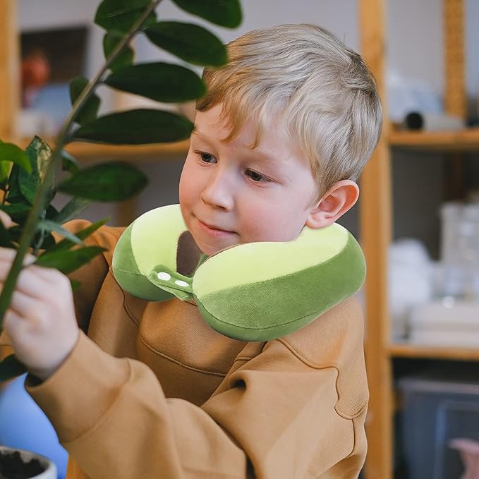 Niuniu Daddy Avocado Kids Travel Neck Pillow for 3-8 Years Old, Soft Memory Foam Cervical Neck Support Pillow for Sleeping Airplane Road Car Essentials for Long Trip Travel Toddlers Boys Girls