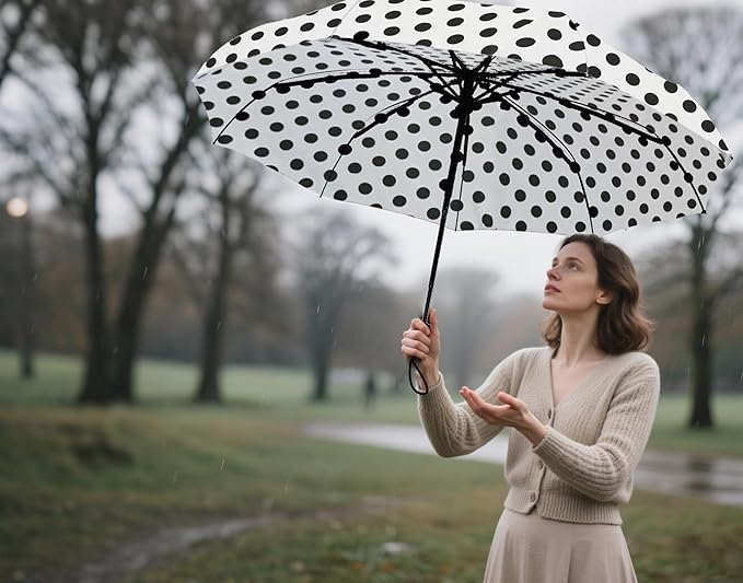 SIEPASA Windproof Travel Compact Umbrella-Automatic Umbrellas for Rain- Small Portable Windproof Umbrellas for Men Women Teenage. (White Polka Dots)